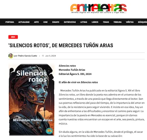 Ágora siglo XXI Comunidad Artístico-Literaria Descentralizada ‘SILENCIOS ROTOS’, DE MERCEDES TUÑÓN ARIAS Mercedes Tuñón Arias ha publicado en la editorial Ágora S. XXI el libro Silencios