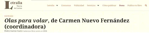 Emociona este libro, cuando Carmen López cuenta su lucha, tras perder la vista a los siete años y convertirse con el tiempo en una gran surfista, víctima del acoso y el bullyng, la deportista nos narra una historia de superación que nos emociona y con la que empieza esta estupenda antología, publicada por Ágora S. XXI y coordinada por Carmen Nuevo, titulada Olas para volar.